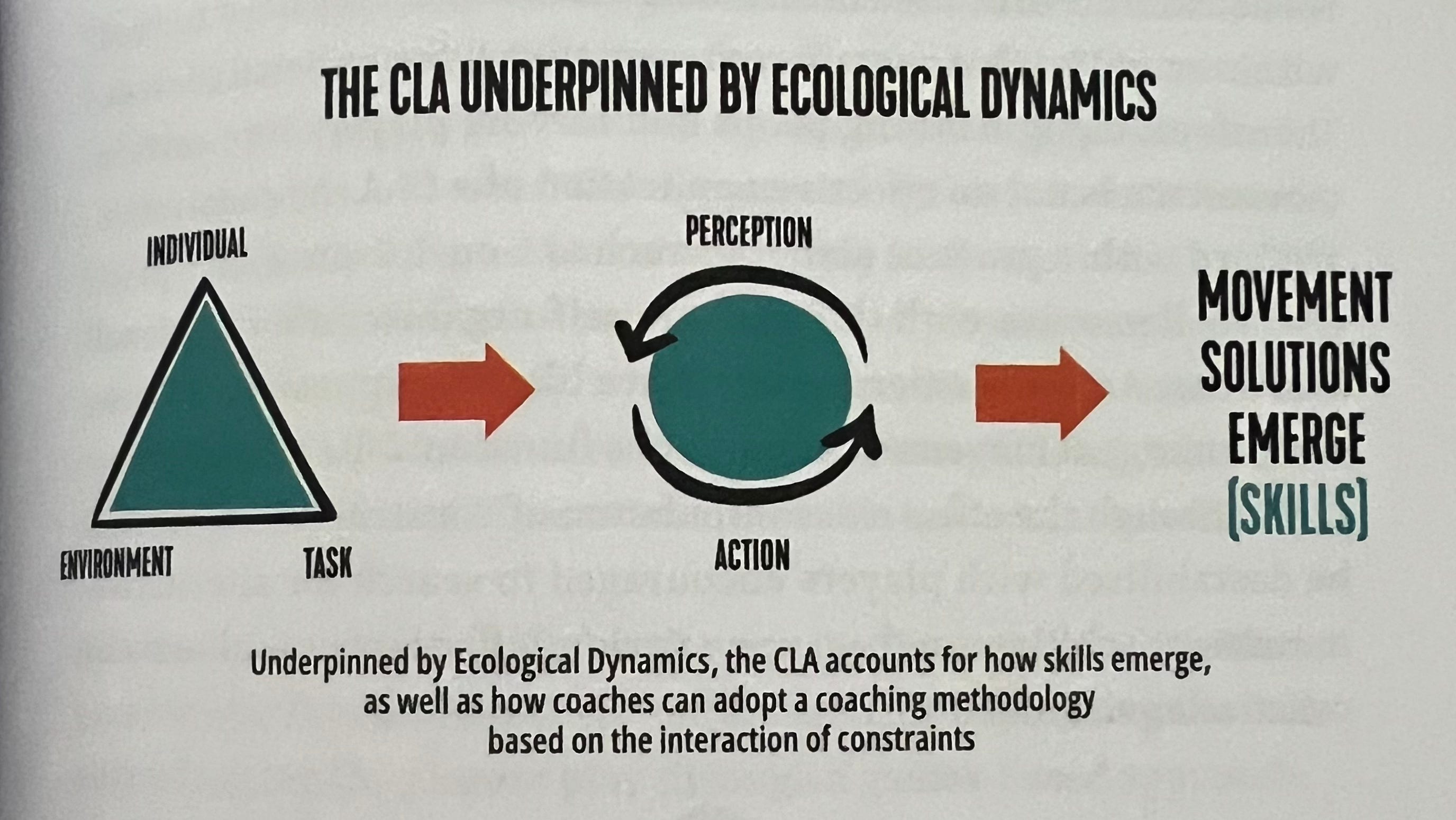 The Constraints-Led Approach (CLA): Athletes develop skills through constraints—task, environmental, and individual—that shape their behavior in game-like scenarios.